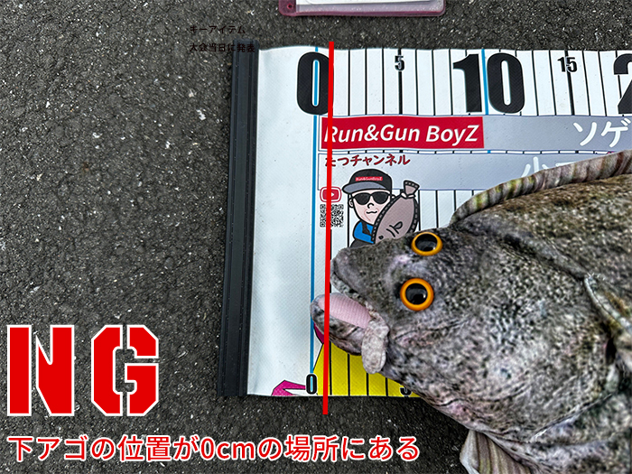 • 魚体の上にメジャーを被せての撮影