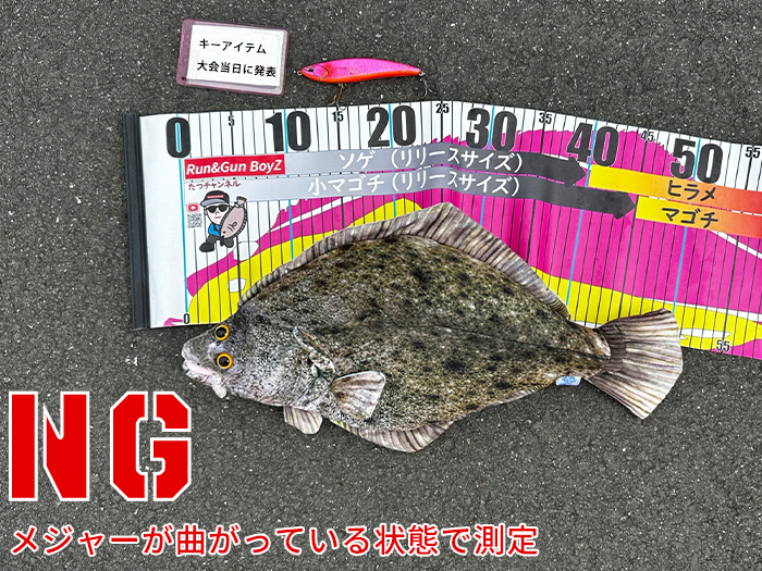 • 40㎝以上のヒラメ2枚の合計全長で競います。(小数点切り捨て)