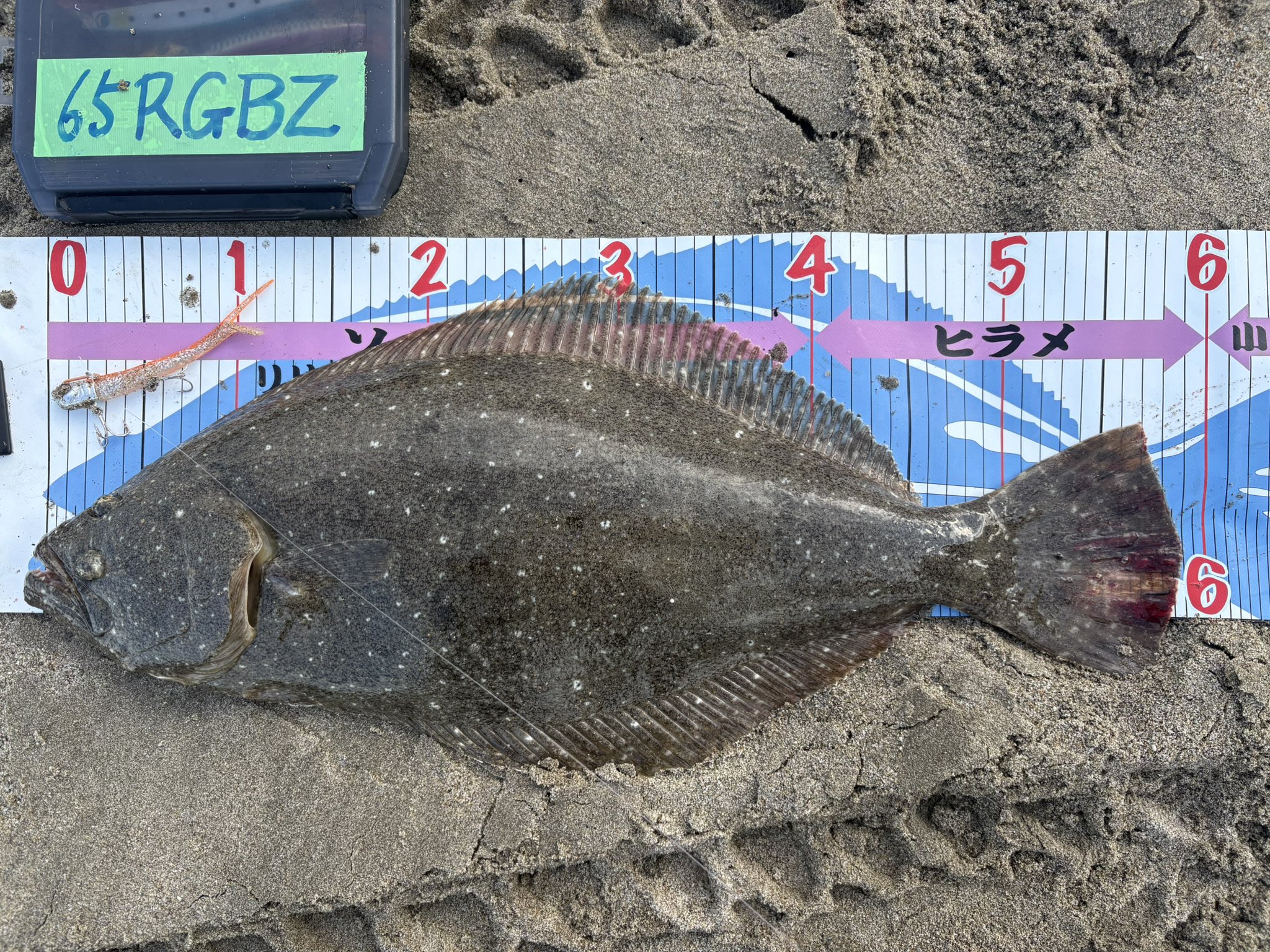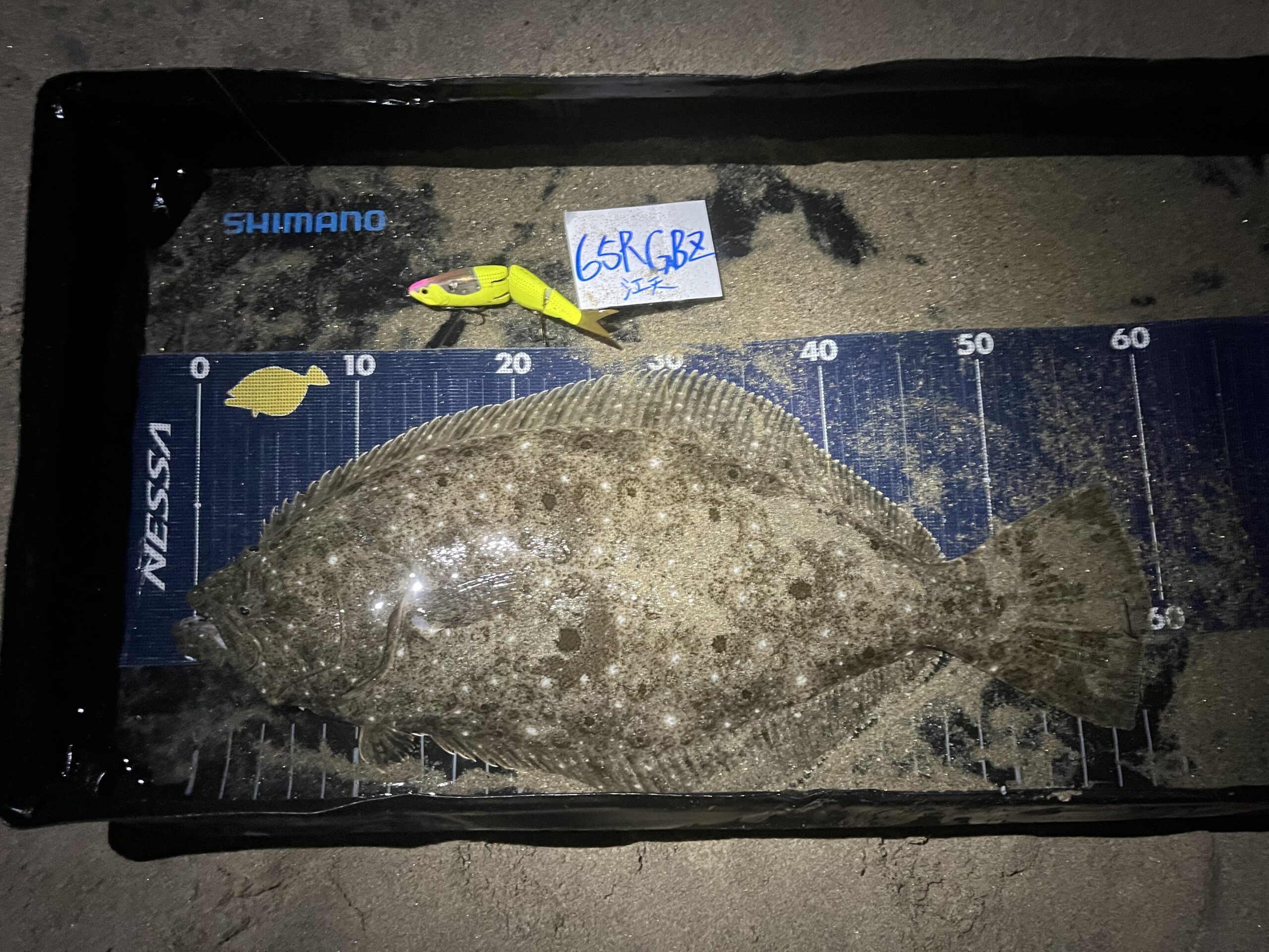 パームスのルアーで釣ったヒラメの最大サイズ。他賞との重複無し。