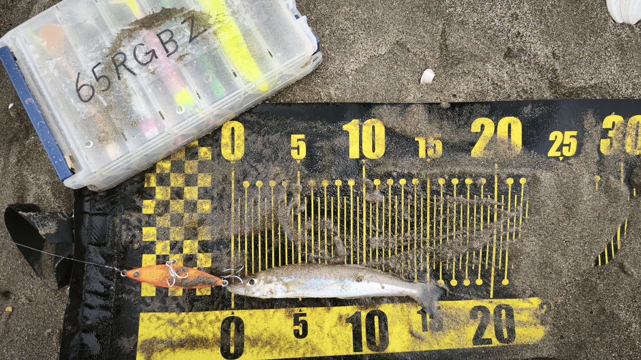 • 釣ったルアーを写真に映るように置く。